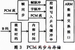 FPGA完成PCM数据的帧同步和解调B码,写入到乒乓SRAM缓冲区中,实现如图3所示。