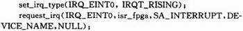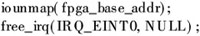FPGA连接在ARM的EINT0上,isr_fpga为中断处理函数指针。当关闭FPGA设备时,需释放I/O内存,释放中断: