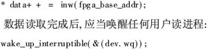 当用户程序读FPGA设备时,数据还未准备好,此时驱动程序应该阻塞该进程,将其置入睡眠状态直到条件满足。此时需要初始化一个等待队列头,对读进程的休眠和唤醒时使用: