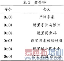 Ioctl用来设置FPGA中帧同步器和模拟源的参数,部分设置命令如表1所示。