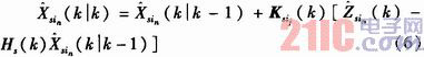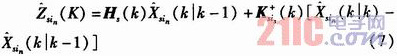 为局部节点s用于更新第i个局部轨迹的近似测量;Ksis(k)是局部节点s的第is个局部轨迹的滤波增益。根据式(6)求解