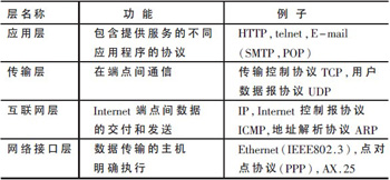 表1 TCP/IP协议各层功能