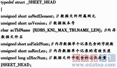 智能校验模块接收来自参数收集模块的表文件,对其进行智能校验。智能校验主要分3类,第1类为不能为空项,某些字段为数据的主键,不能为空,当录入为空时,给出系统性校验;第2类为标准格式项,字段有某种固定的格式,当录入数据的格式不符合字段要求时给出提示;第3类,有些数据项为可选项类型,数据范围固定,直接将该类数据定义为某范围内,采用可选项进行约束,同时可将相关数据进行自动匹配。智能校验可有效地减少数据出现的匹配性错误,同时减少录入的工作量。下面为MDF表文件头解析存储结构: