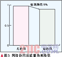 图5显示了区域内网络总体能量消耗与是否进行协同之间的关系,其中的能量进行了归一化。由图5可以看出,有协同时的能量消耗,比无协同时的能量消耗降低了8%。说明该协同覆盖技术具有明显的绿色节能能力。图6显示了网络整体服务能力与是否进行协同之间的关系。由图中可以看出,进行网络协同后,区域S 中的无线网络的整体服务能力有很大提升。无线用户接入率由原先的95%左右,提升到当前的100%。网络资源得到了充分的利用。