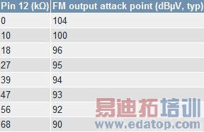 输出电路需要组合AM和FM输出,同时将隐含电源送至集成式高压调节器。为了便于衰减任何到达调节器的AM信号,隐含电源通过一个连接至隔交AM输出的大电感送至集成稳压器。AM输出通过较小的第二个电感连接至输出连接器,防止FM输出造成AM输出级失真。FM输出为交流耦合,带有一个小隔直电容,防止IM2分量(A-B)造成AM输出失真。也有反馈通路。建议的解决方案是390Ω电阻(R1)与2200pF电容(C1)串联,以获得最优的噪声系数性能。如果需要,可利用输出隔直电容(C2)后边的衰减器调节总增益。连接至FMOUT的上拉电感(L1)根据阻抗匹配和增益确定大小。LDO输出(VLDO)之间的简单R/C滤波器(3.3Ω/10nF)改善了FM噪声系数。FMBYP引脚需要100pF旁路电容提供30dB的AGC范围。