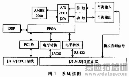 接收话音时 通过CPCI总线或者LVDS串行总线收到压缩数据,经语音编解码芯片解码后通过D/A转换将话音转换为模拟信号;或者将收到的压缩数据,经解压后通过高速RS 422串口远距离传出去。