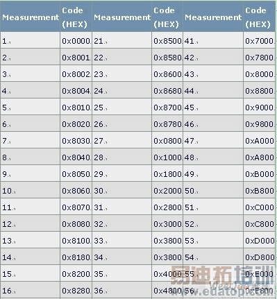 考虑到DAC的分辨率,还应该确定需要多少位编码才能精确地测量器件性能。16位器件有65,536个可能的输入编码,12位器件有4,096个。由于不可能人工测量所有这些编码,因此,常用的方法是测量编码子集。少量的编码减少了采集数据所需要的时间,并且能够提供非常精确的结果。掌握器件的体系结构有助于选择某一器件的最佳编码。