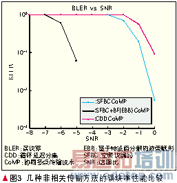 文献[12-14]中分别给出了基于系统帧标号(SFN)和基于循环延迟分集(CDD)的非相关传输方案、基于联合预编码和独立预编码的处理方案以及系统帧标号预编码方案,本文分别基于相关和非相关传输方案与其他方案进行了比较,仿真结果如图3和图4所示。