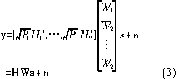 式中,Hn'=Hn Bn ,1≤n≤P 为终端测得的参与协作的第n 个节点的信道,为Nr×1维矩阵;Hn,1≤n≤P 为第n个协作节点与终端间的信道,为N r×N t,n 维矩阵;Bn 为方向权值矢量,为N t ,n×1维矢量;Wn',1≤n≤N为1×L 维矩阵。