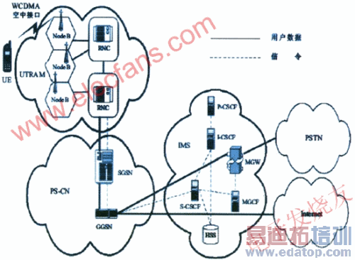 电路交换域与现有的2G网络类似,采用电路交换技术提供话音业务。分组交换域是2.5G网络中引入的,主要网元设备有SGSN (ServiceGPRSSwitchNode)和GGSN(Gateway GPRS Switch Node)。它们负责向终端提供IP连接,用户通过该域进入因特网,用户可以由此发送邮件,浏览网页。它并没有在IP之上定义任何特殊的体系结构,它主要是一种接入技术。IP多媒体域(即IMS,IP MulTImedia Subsystem)是3GPP制定的UMTS R5版本中引入的,采用SIP作为主要的信令协议,使得移动运营商可以为用户提供端到端的全IP的多媒体业务。