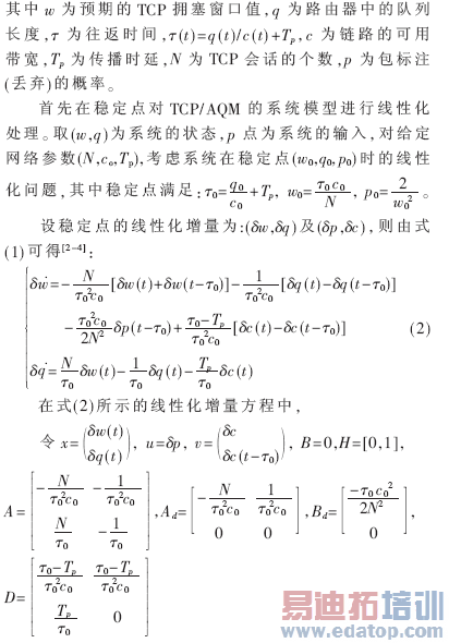Misra等人基于流体动力学提出了TCP/AQM系统模型[1],用一对非线性微分方程表示: