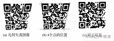 在获取QR码图像数据时,可能会因为拍摄角度等原因造成图像几何失真,例如获取的QR码图像为任意四边形,则须对失真图像进行反透视变换[4]。变换算法如图4所示。