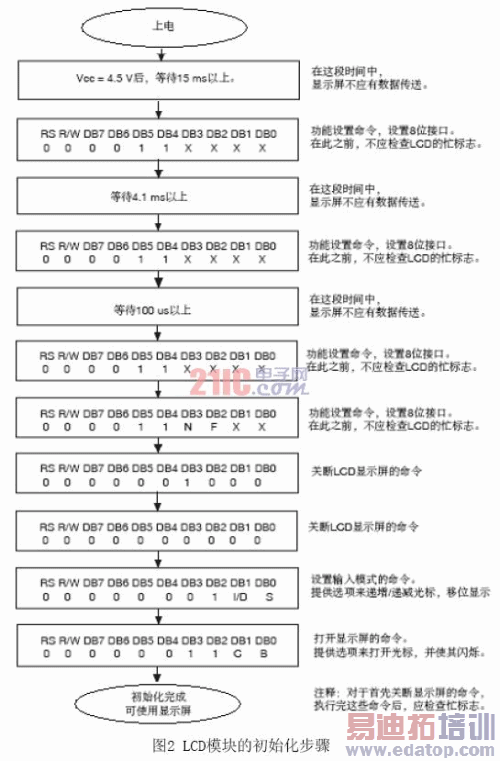 LCD控制器与LCD模块之间的接口信号有E、RS、RW 、DB0-DB7: