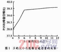 1)编码段大小S的选取:如图l所示,S>64时,重建图像的客观质量增加趋于平缓,所以在实现时选择S大小为64,这样一个编码段所需的编码原数据存储量为8kB,从而可以保证对编码段的编码过程在数据存储器L1中完成,而无需Cache和DMA在各级存储器之间转移数据,提高了编码效率。