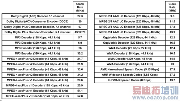 图3:目前流行的音频编解码算法都已经移植到了Tensilica的Hi-Fi2音频处理引擎上。