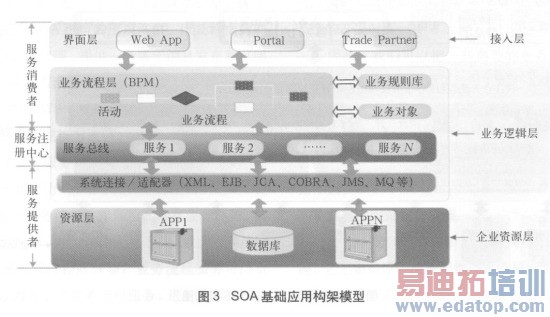 采用面向服务软件架构设计方法,面向服务的架构明确 地强调了软件组件之间的松散耦合,以及其独立标准界面的使用,强调服务的可重用性、服务重组,强调面向业务、面向流程的设计思想。与传统的设计方法相比,SOA具有松散耦合、共享服务、联合控制等更多优势。