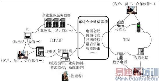 通过东进融合通信系统,能搭建一个开放的多媒体通信平台,平台连接企业的管理者、客户、员工及合作伙伴的业务或应用,将各种资源有机整合在企业的业务流程中,促进企业与客户及合作伙伴的有效交流和沟通,提高协作水平,降低企业运营成本。