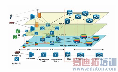 公共的网络汇聚层要求在网络L2/L1/L0提供业务疏导;