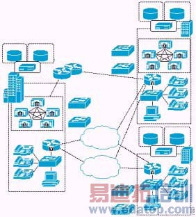 对于这一类型的客户可以使用专门的思科CallManager软硬件平台,基于企业内部IP网实施,其主要包括: