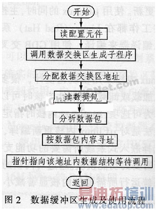 服务器依据数据交换区配置文件生成设备数据交换区。服务器进入运行模式之后,首先检查生成数据交换区与底层缓冲区的配置文件是否存在。如果不存在则打印错误信息,存在则依据配置文件在系统SDRAM区开辟数据交换区与底层缓冲区。接着系统检查PLC通信协议交换是否存在,不存在则打印错误信息,存在则将COM2口置为PLC通信端口。一切就绪之后,系统启动任务调度完成各种任务。数据交换区生成及使用流程图如图2所示,数据缓冲区生成子程序流程如图3所示。