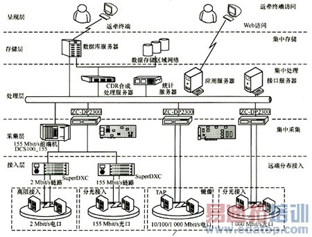 呈现层主要是指客户终端或者反牵终端。为客户提供友好的用户界面,便于用户进行在线监测、告警分析、生成各种报表或者进行网络性能分析等,提供强大的分析应用。