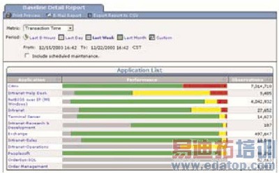 这种特征的一个例子,在图11-15 的报告显示。这些性能图提供了更高水平的视图,这些视图对改善性能是非常有用的。这些图选择一系列选项,包括应用、客户区域、服务器、感兴趣的测量标准、排序次序、和时间范围。