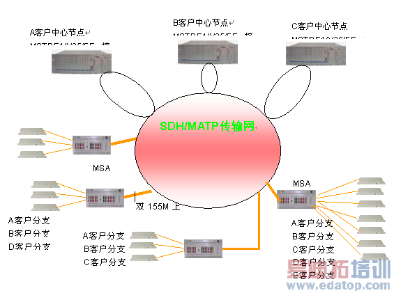 在上述讨论的基础上,我们提出打造MSTP与MSAP有机衔接的大客户精品传输网络组网思路,其整体组网网络结构如图4-1所示。