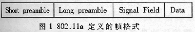 802.11a系统的核心 技术是OFDM技术,OFDM技术的核心是FFT/IFFT变换。为了实现OFDM技术所需的同步捕捉、频偏补偿等功能,802.11a定义的帧格式如图1。