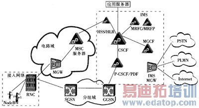 IMS通过核心网分组域接入,通过MGCF实现和外网的互通。可以向IMS签约用户提供基于CAMEL业务环境、OSA以及SIP AS(应用服务器)的业务的接入。