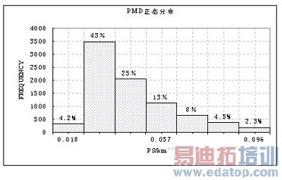 从上图可以看出,中天光纤的PMD值分布主要集中于0.030附近。有着比较低的PMD值水平,能够充分的满足长距离通讯的需求。