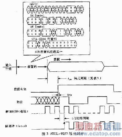 STEL-9257是一款能很好满足以上要求的差分QPSK突发解调器,与IEEE802.14、MCNS和DAVIC解标准兼容,可直接输入5MHz~65MHz中频信号,解调速率最高可达5.12Mbps。STEL-9257采用固定前置码(4种,长度为14或16个码元周期),大大缩短了同步的时间并节省了独特字所需的系统开销。STEL-9257所要求的突发包之间保护间隔最小为4个码元周期(当采用可变长度突发包模式时为11个码元周期)。