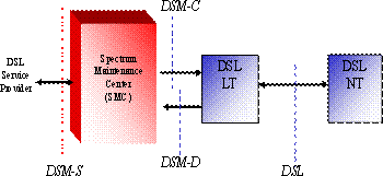图3给出了DSM的参考模型,其中SMC是运营商的频谱管理中心,它可能位于网管或DSLAM上,DSM-D是SMC向DSL Modem收集信息的接口,DSM-C则是SMC下发控制信息的接口,DSM-S是SMC与运营商网络的接口。