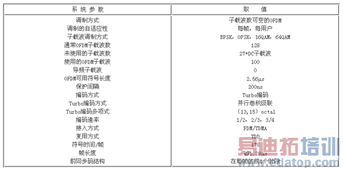 (1)使用OFDM技术,子载波数为128;