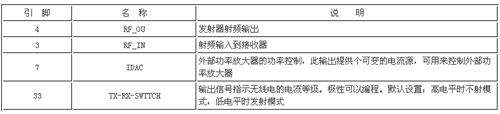 32MHz时钟用来作为射频电路的基准,也为大部分内部数字电路提供时钟信号和为外部处理器提供定时信号,说明如表3所列。