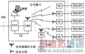 CS:中心站 TS:终端站 CCS:中心控制站 RS:接力站 CRS:中心射频站 TE/CPN:终端设备/用户驻地网 SNI:业务接点接口 UNI:用户网络接口