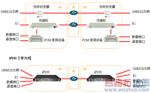 如图1 所示,iPDH与传统接入设备的工作方式相比有着明显的优势。