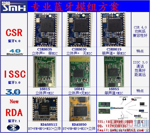 蓝牙4.0 模组方案提供商,CSR4.0系列, RDA方案 集成 蓝牙+MP3+收音+AUX一体方案,性价比高,外围电路极其简单,适用性强。 18589093089 王R QQ:1274338136