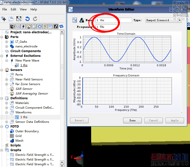 仿真内容:外部平面波(1 thz 正弦, y方向极化) 垂直照射 天线上方,求天线间隙、 边缘之间有否电场增强等信息。